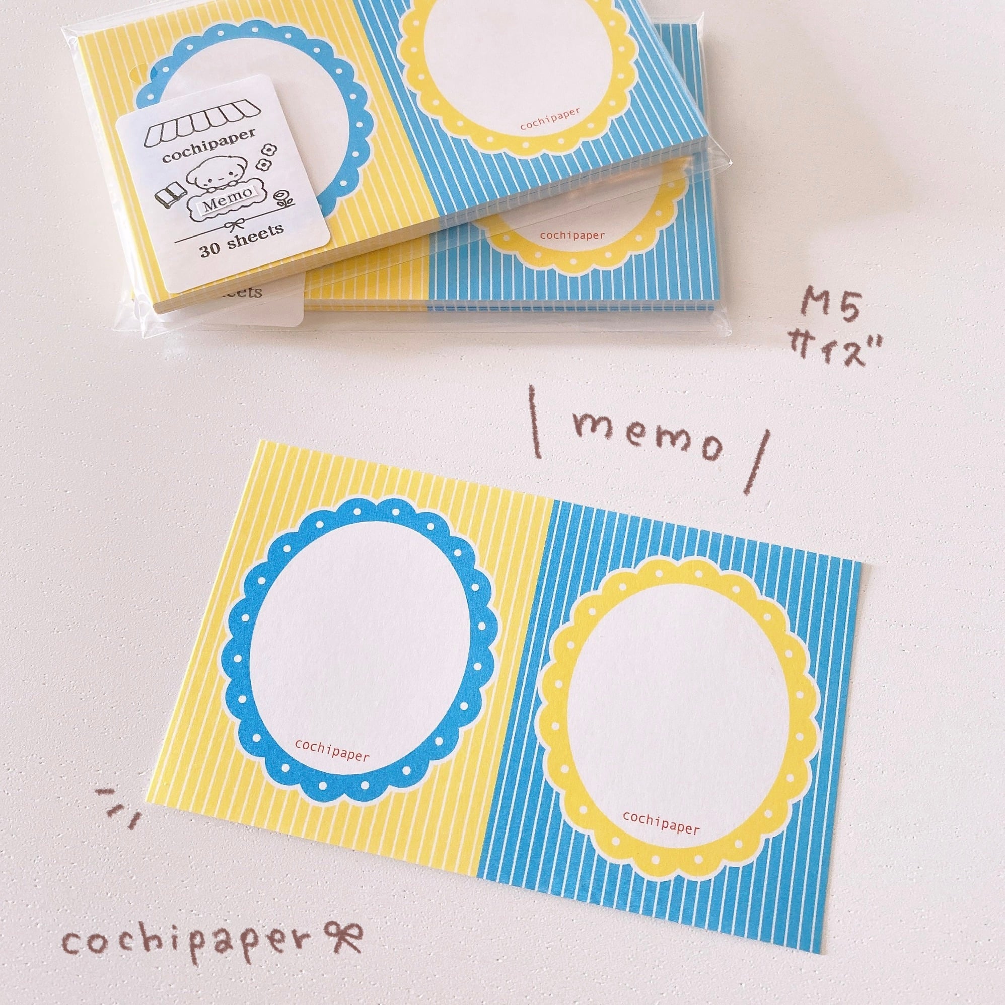 メモ / フリル 水色×黄色 M5サイズ 片面30枚 M5018