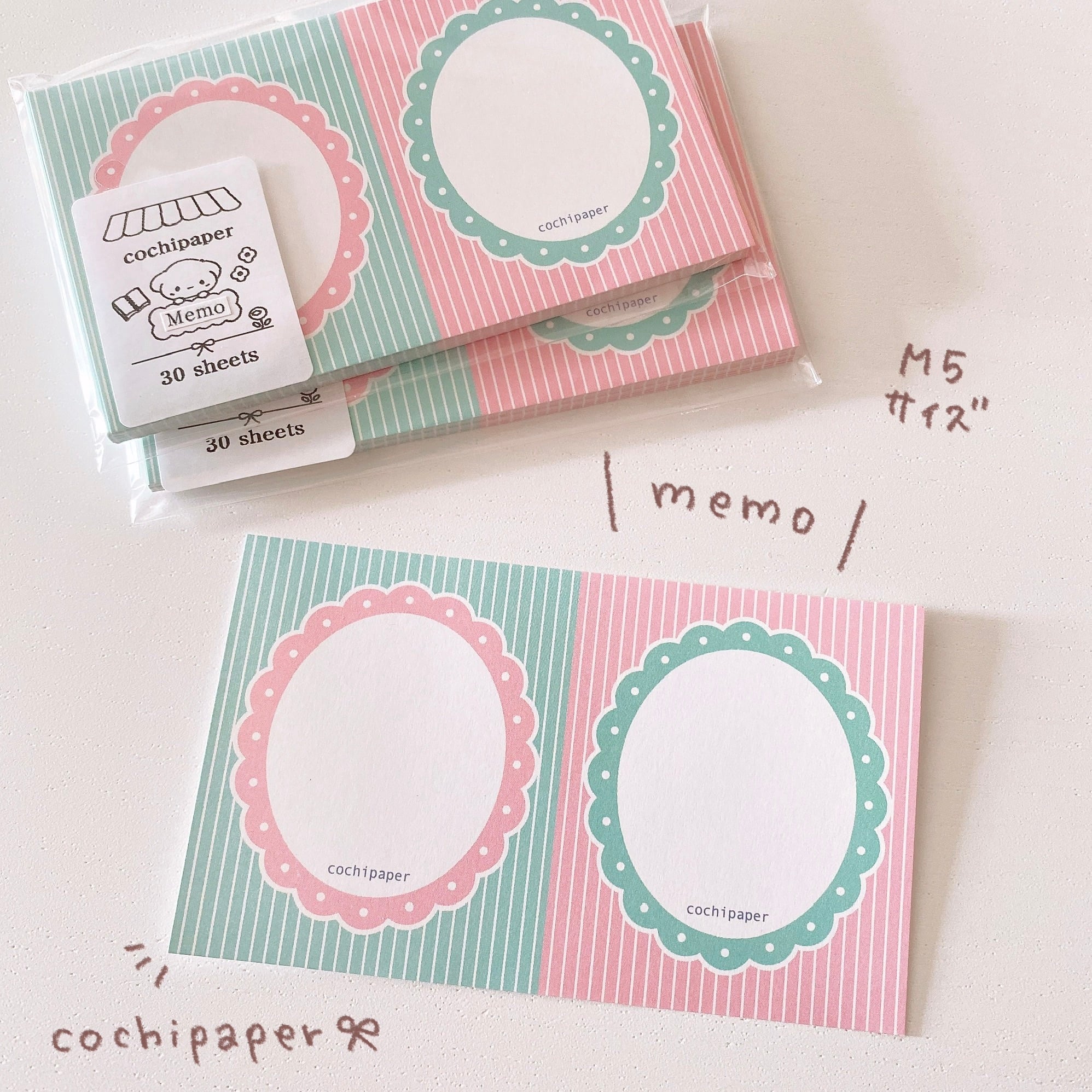 メモ / フリル ミント×ピンク M5サイズ 片面30枚 M5019